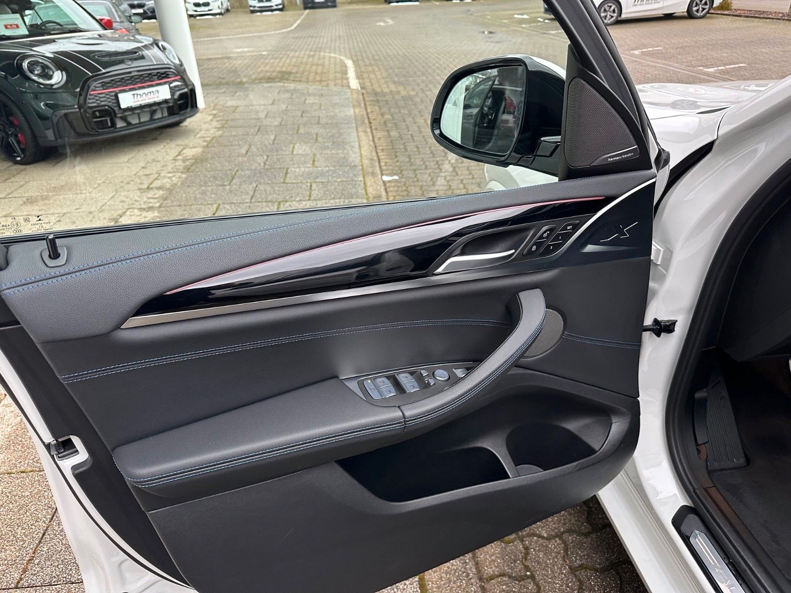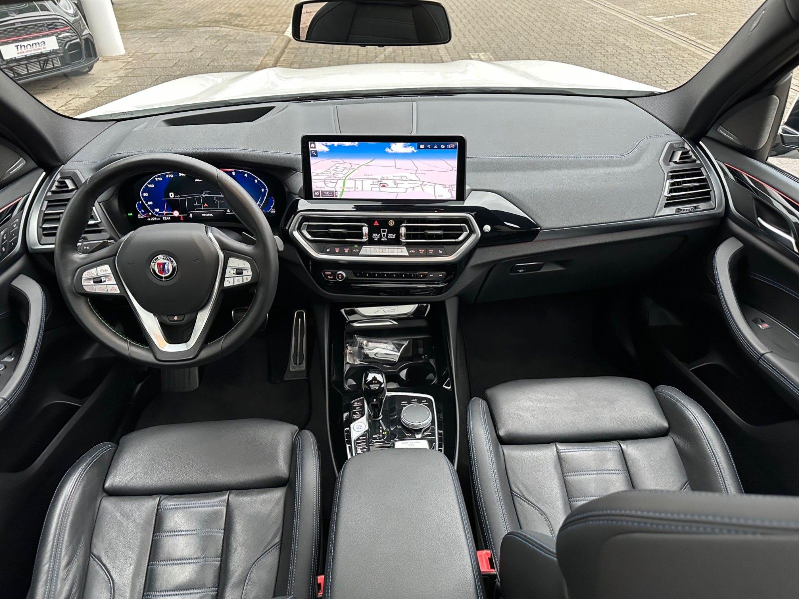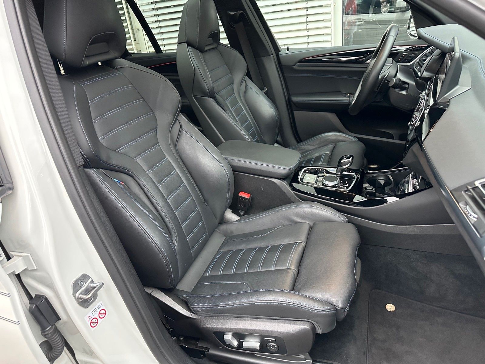 Lackierung: 0300 AlpinweißPolsterung: Leder Vernasca schwarz mit blauen Aktzentnähten